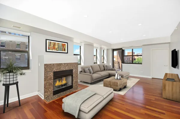 Tons of natural light beams through SW facing corner condo with 3 outdoor spaces nestled in the mid-rises at State Place! Spacious open concept living, dining, and kitchen with granite counters and stainless apps. Highly sought after gas fireplace. Generous bedroom sizes with many spacious professionally organized walk in closets. Hardwood floors main areas & fresh paint. Side by side in unit laundry with tons of storage, utility, pantry space. Assess include: cable/wifi, doorman, pool, trash, water. Full amenity bldg w/24hr doorman, outdoor pool. FFC fitness & dog run on site. Near trendy SL dining, Roosevelt Collection shopping/theater, Museum Campus, Grant Park, Lake, Soldier Field, Trans (LSD, 90/94, 290, 55) Mich & State bus + red/orange/green EL right outside door. Steps to Trader Joes, Mariano's, Whole Foods, Target, & 4 dog parks. Experience the quaint feel of a mid-rise plus amenities of high rise! Pet friendly! Over $1.35 Million in reserves. No specials. Garage parking +$25k